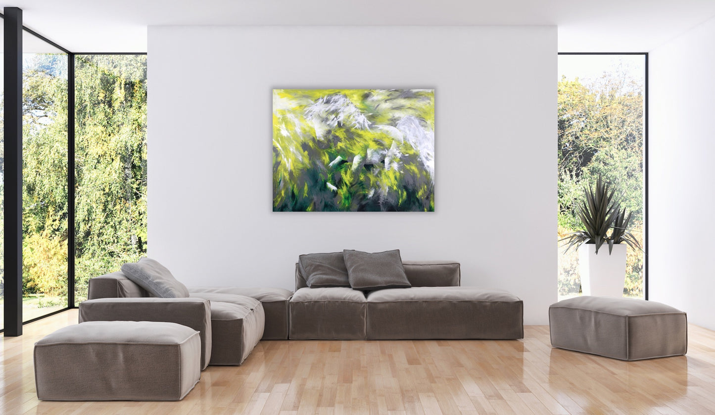 The art work is printed with UV printing, which ensures a durable print with clear colors that retain their shine for many years to come. The colors appear calm and balanced on the semi-matte surface of the canvas, which provides a non-reflective print without glare from light sources.