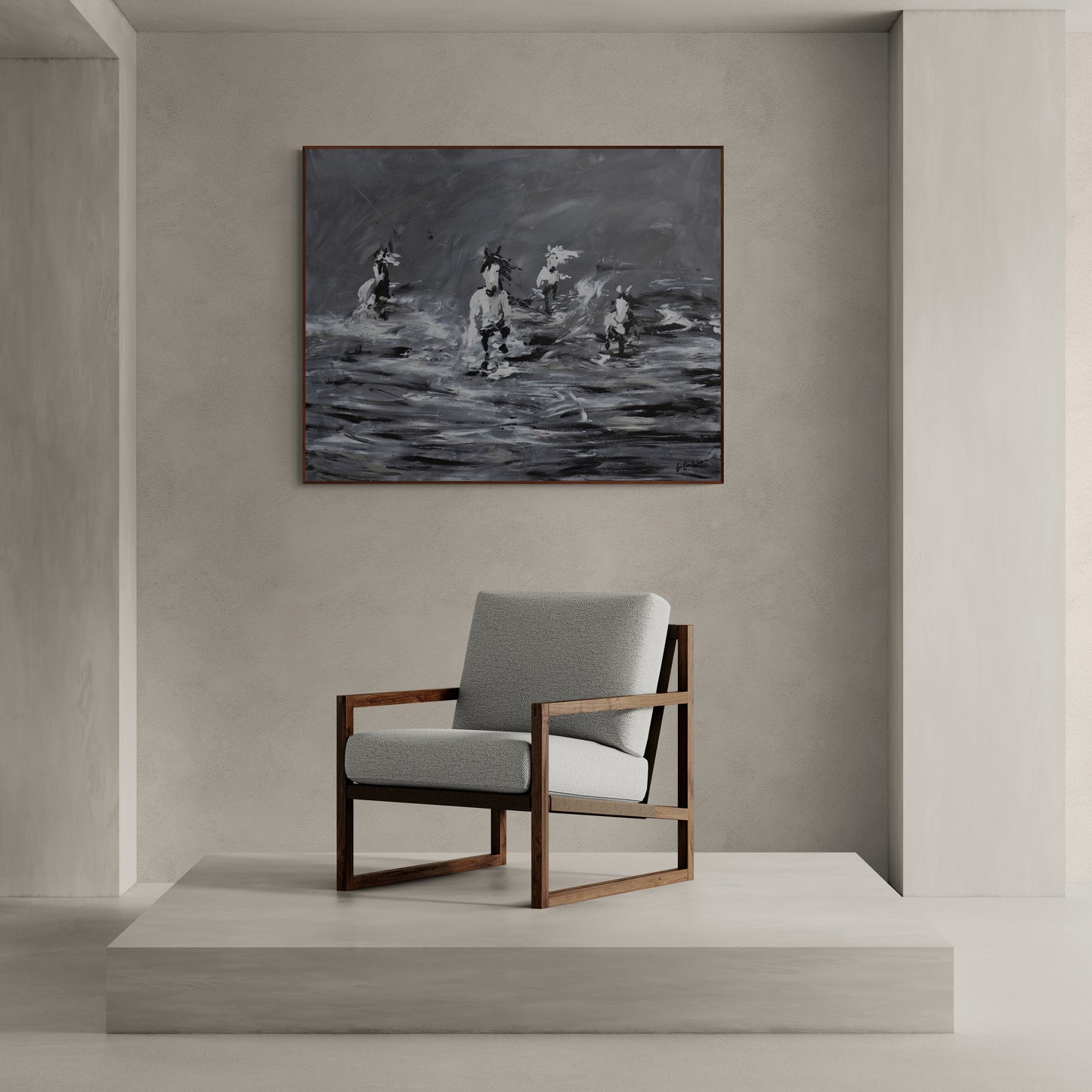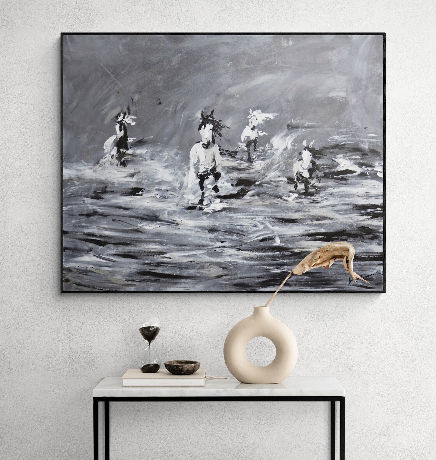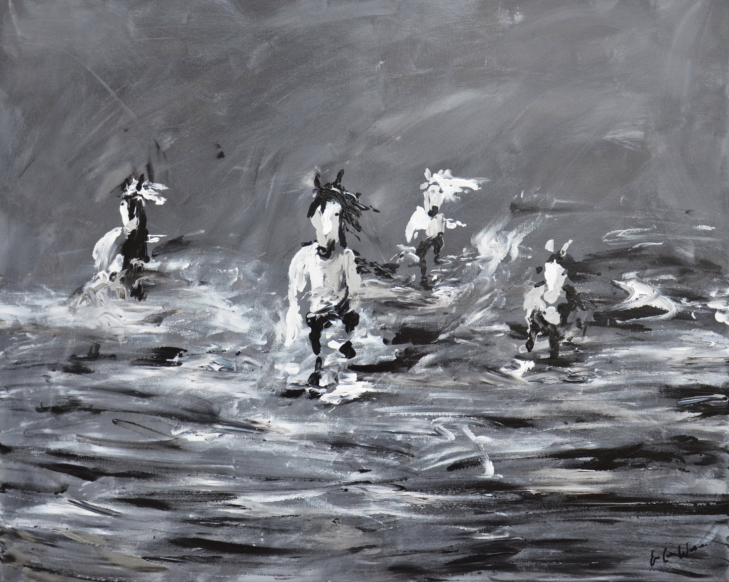 ORIGINAL ART work abstract group of wild horses contemporary painting "Four of four"