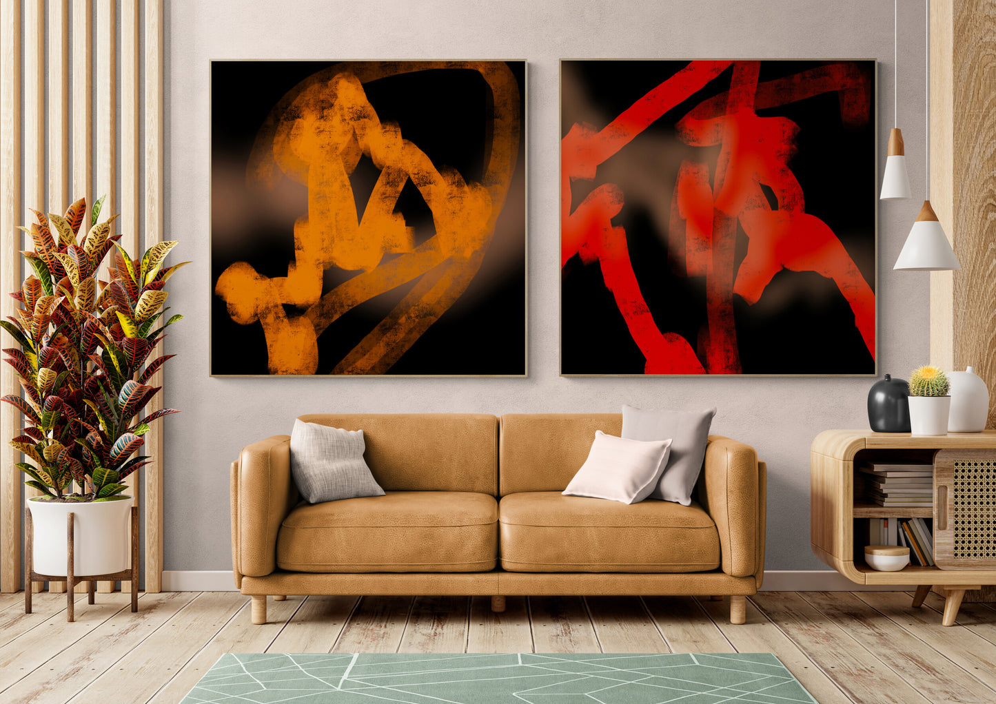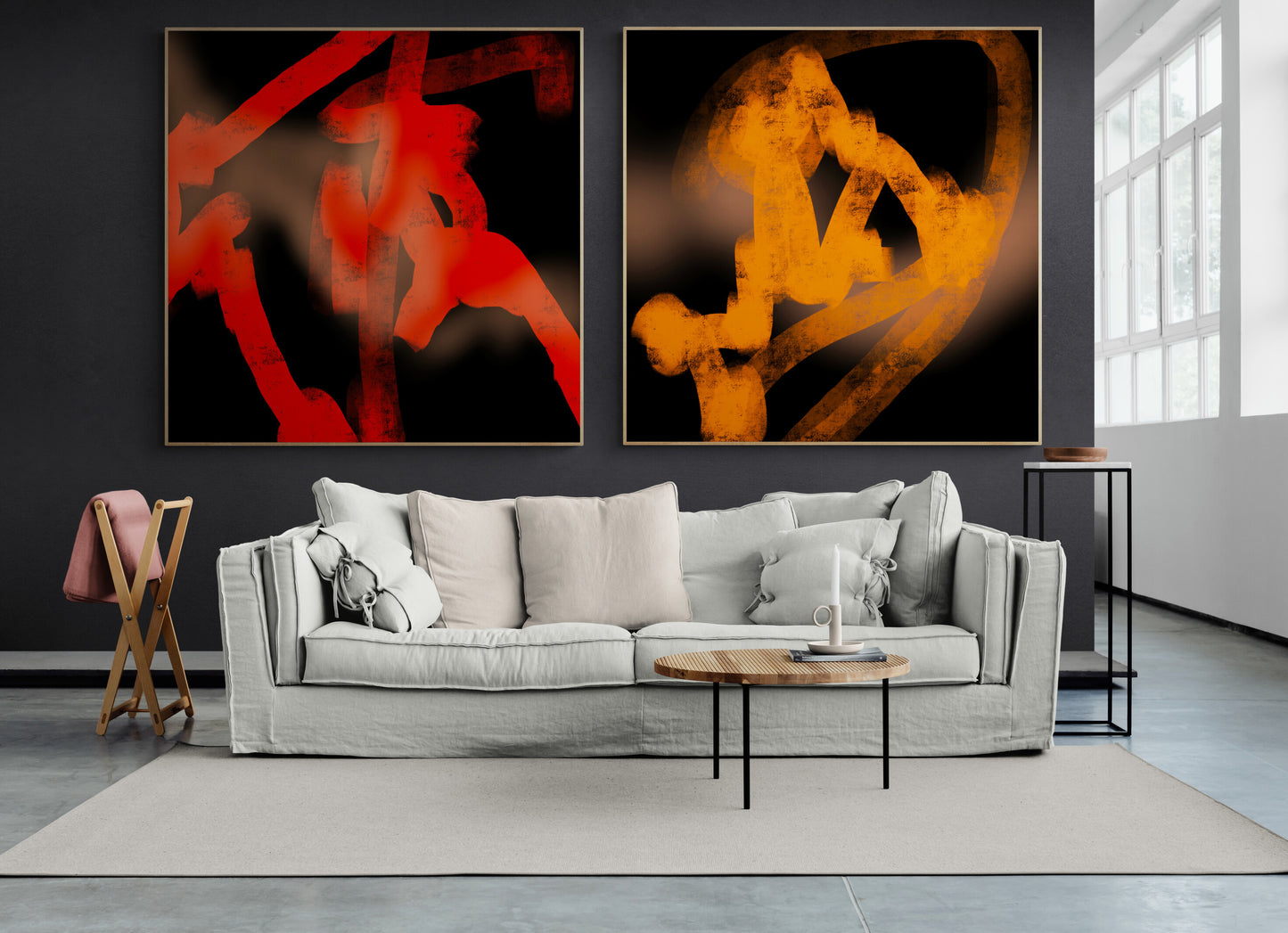 FINE ART PRINT Abstract orange and black rollercoaster with artistic finish wall art Scandinavian style