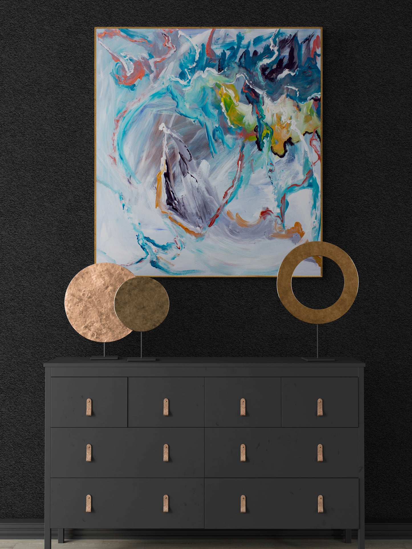Since I was born I have always had a creative mind. Ideas and thoughts just pops up in my mind contentiously. They come fast and I can´t really control how they come about. It was the same when I found my way of painting. A couple of years after finishing art school I was painting with my son one day, then it just happened. My son showed me the playful way of not thinking, when painting and that the process should not be controlled. But most of all to trust in the process and not to be afraid of doing wrong. It needs to just happen.