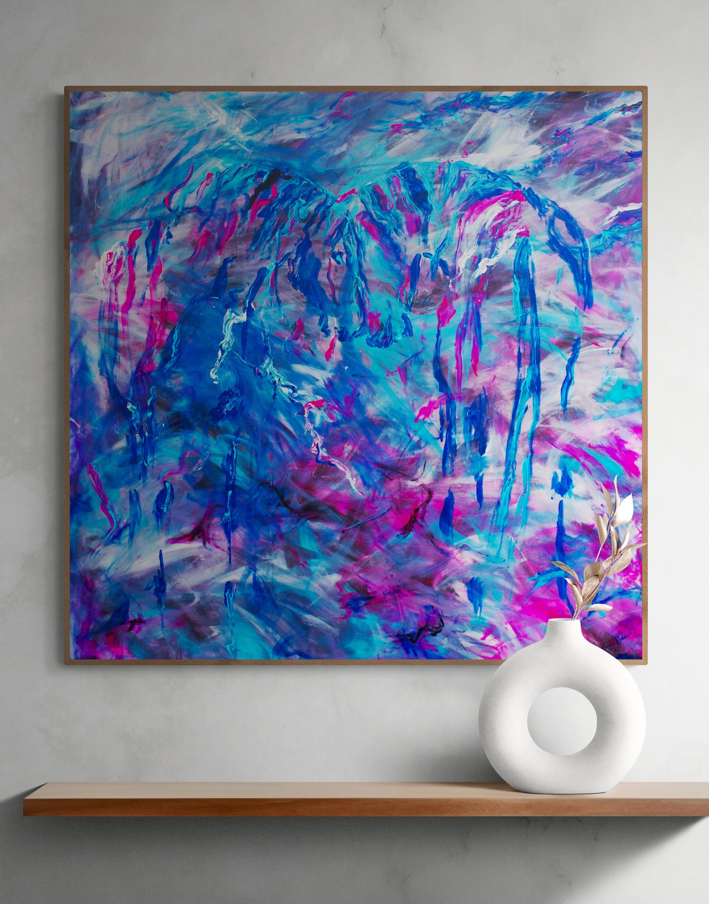You can choose by three different frame styles with top quality floating frame or simply just choose to hang you canvas stretched with out frame. All floating frames are produced in our own frame workshop with real wood moldings and without glass, so you retain the characteristic textured and non-reflective surface of the canvas.