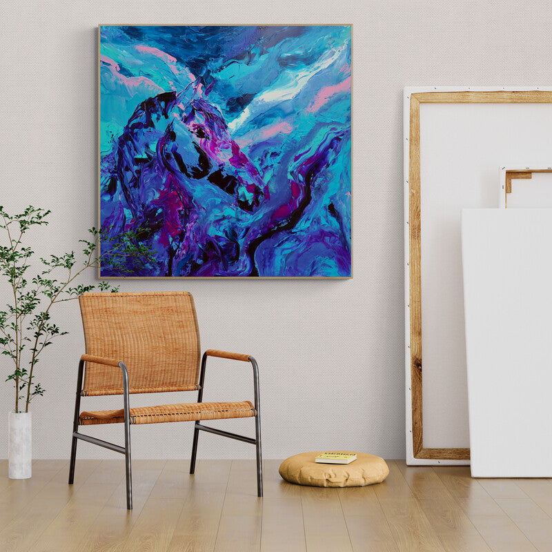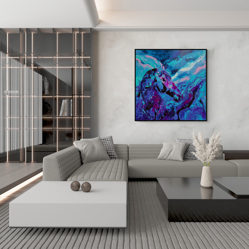 A young horse looking out to the horizion. This painting stands for a new era and beginning. Something will come in from the horizon and you are here ready to grasp it.