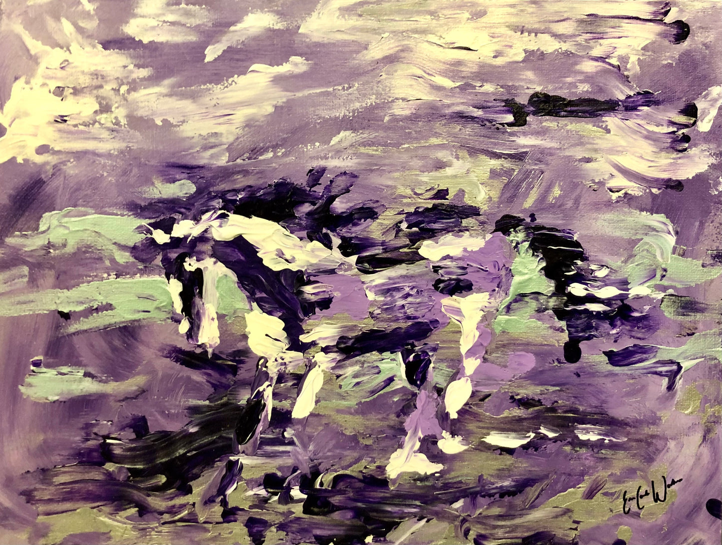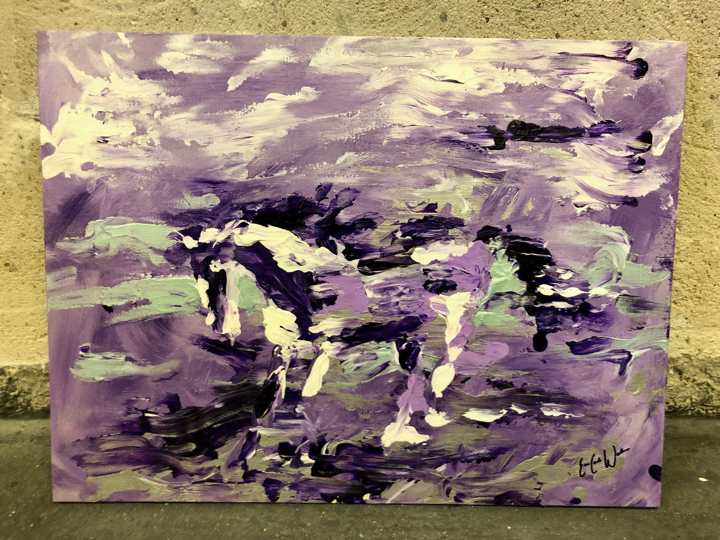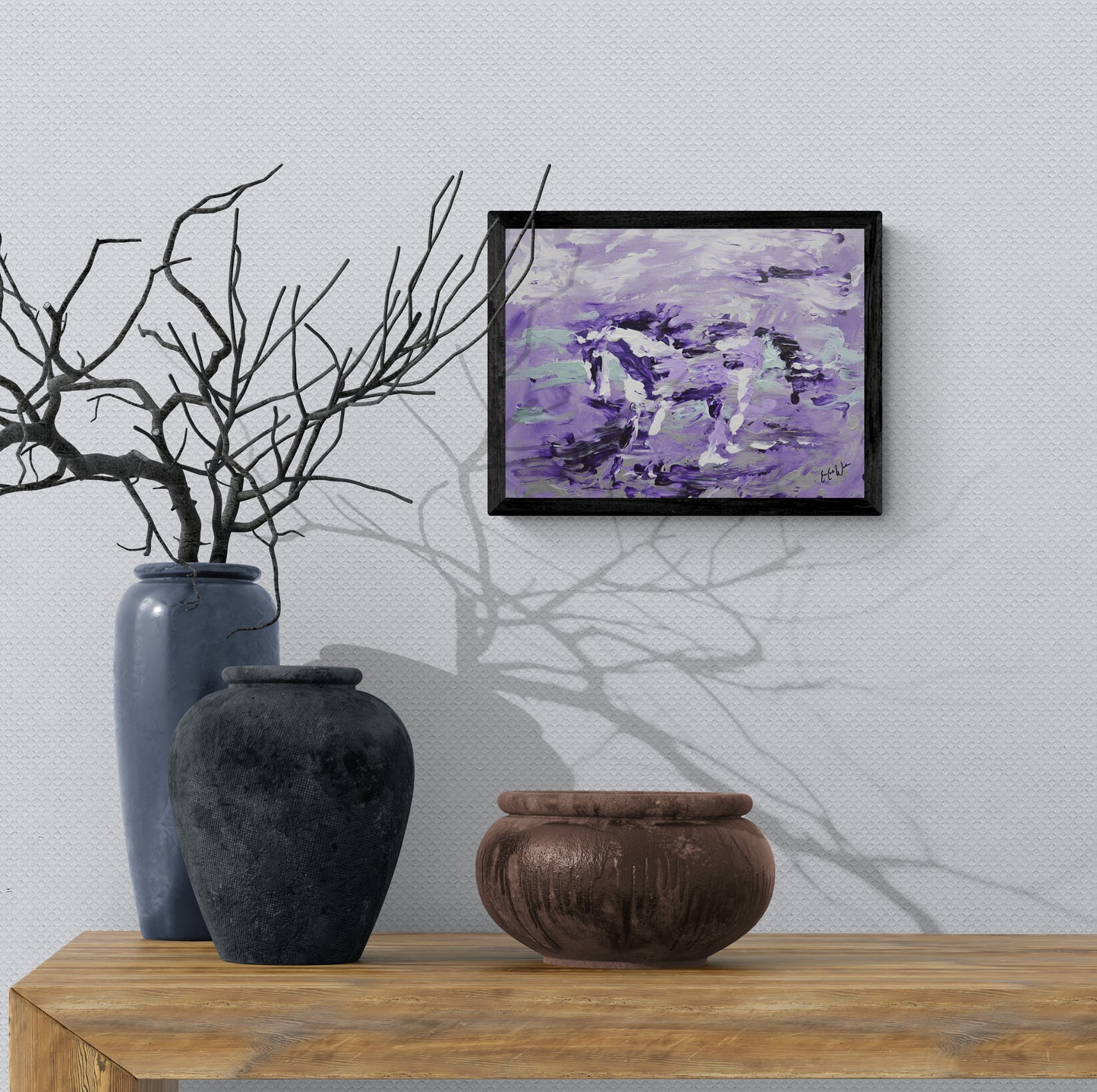 ORIGINAL ART work contemporary painting Horse "Purple fog"