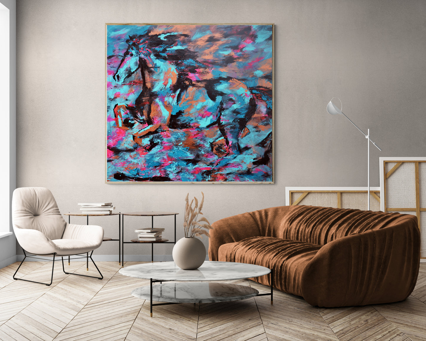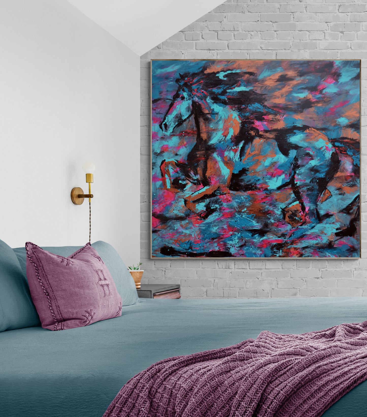 ORIGINAL ART work contemporary painting abstract horse running wild "Thunder run"
